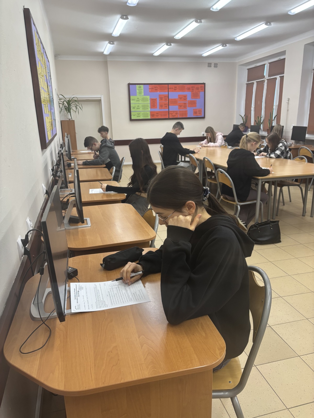 W Olimpiadzie uczestniczyło 12 uczniów z klas 3TA, 4 TA , 4TB i 5TA, którzy rozwiązywali test wyboru obejmujący 20 pytań z zakresu zasad funkcjonowania instytucji ZUS oraz świadczeń wypłacanych za jej pośrednictwem.